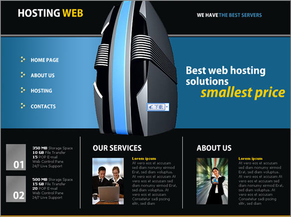 Virtual hosting service web interface flash templates