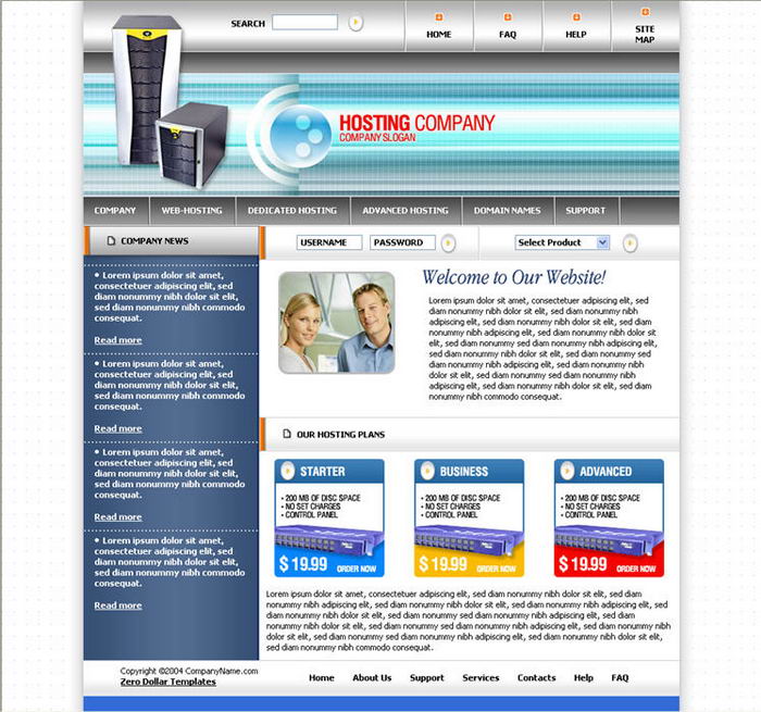 Server hosting, Web site templates rental space