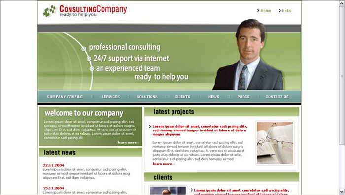 Business company's Web site page layout template
