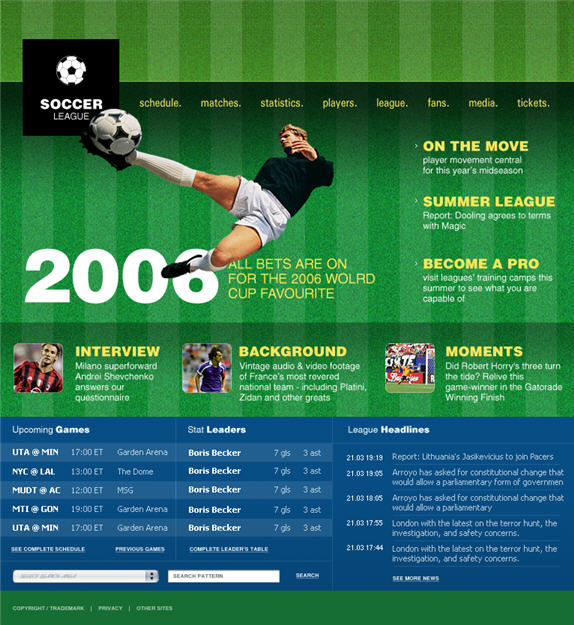 Football website interface